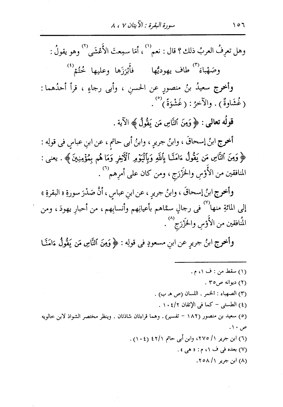 أخرج ابن إسحاق ، وَابن جَرِير ، وَابن أبي حاتم عن ابن عباس في قوله {ومن الناس من يقول آمنا بالله وباليوم الآخر وما هم بمؤمنين} يعني المنافقين من الأوس والخزرج ومن كان على أمرهم.