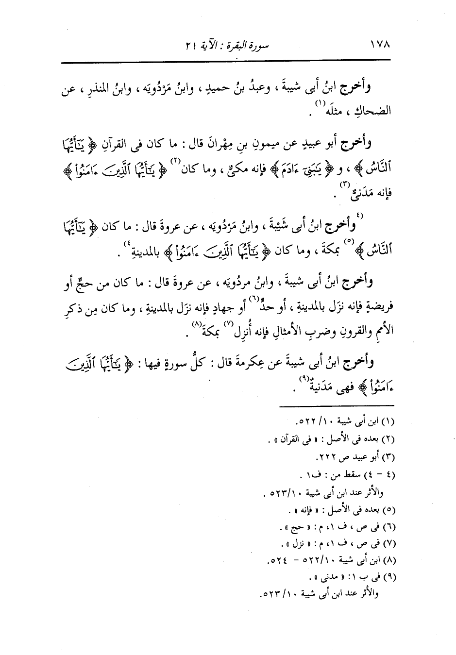 وأخرج ابن أبي شيبه ، وَابن مردويه عن عروه قال : ماكان (ياأيها الناس) بمكه وماكان (ياأيها الذين آمنوا) بالمدينه.