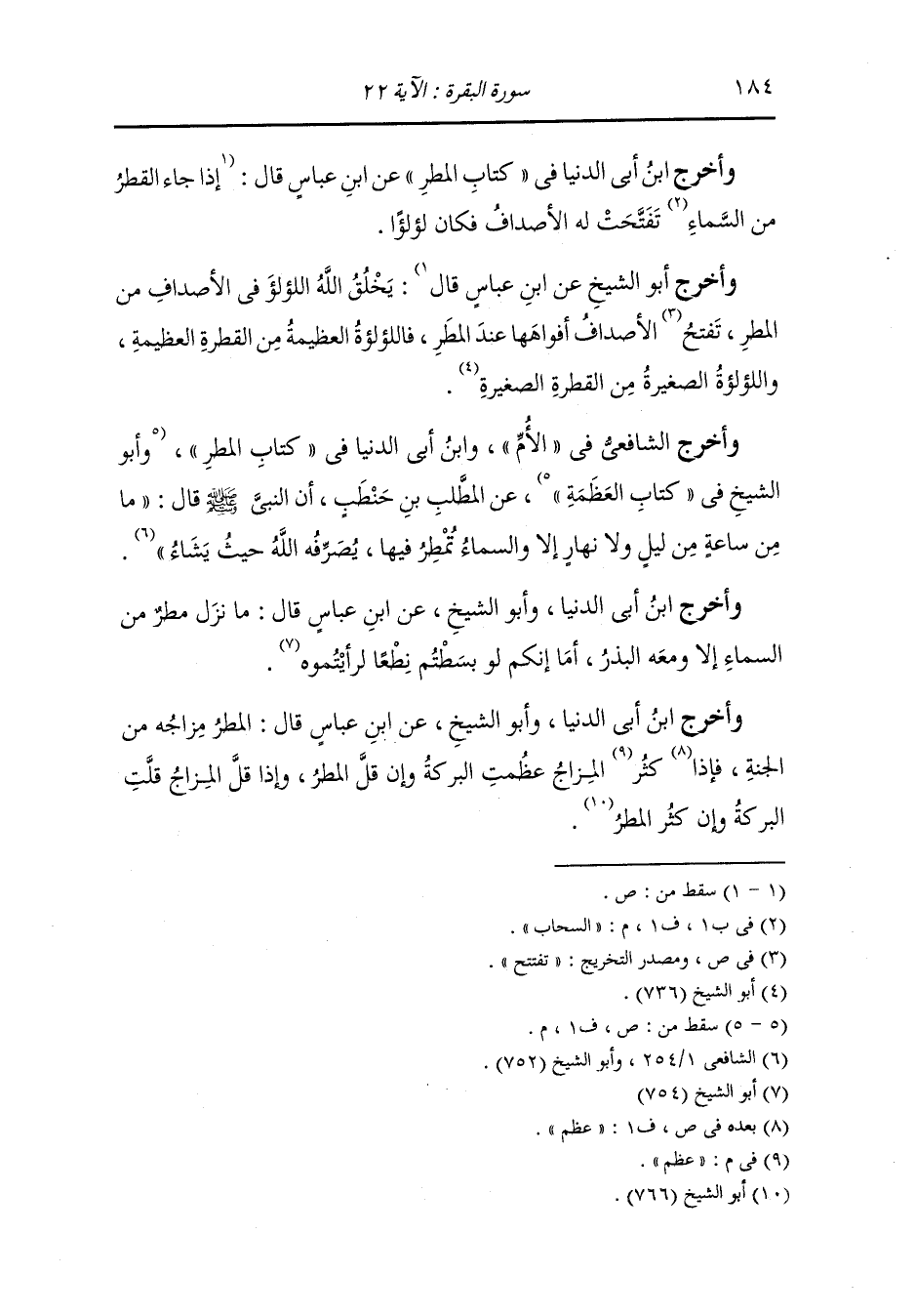 وأخرج ابن أبي الدنيا في كتاب المطر عن ابن عباس قال : إذا جاء القطر من السحاب تفتحت له الأصداف فكان لؤلؤا.