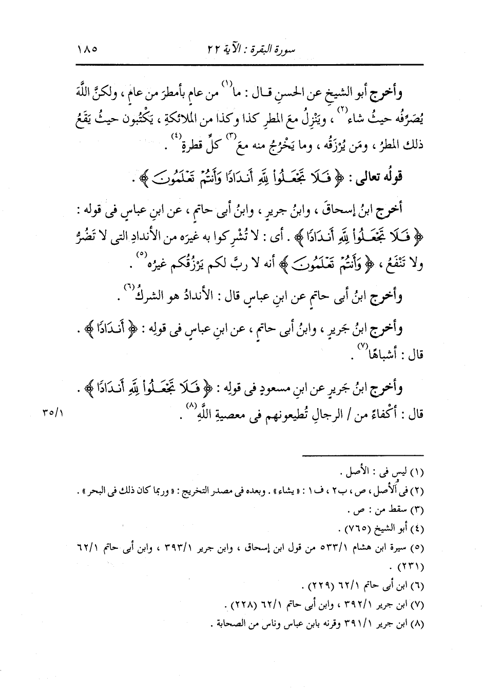 وأخرج ابن جرير ، وَابن أبي حاتم عن ابن عباس في قوله الأنداد قال : أشباها.