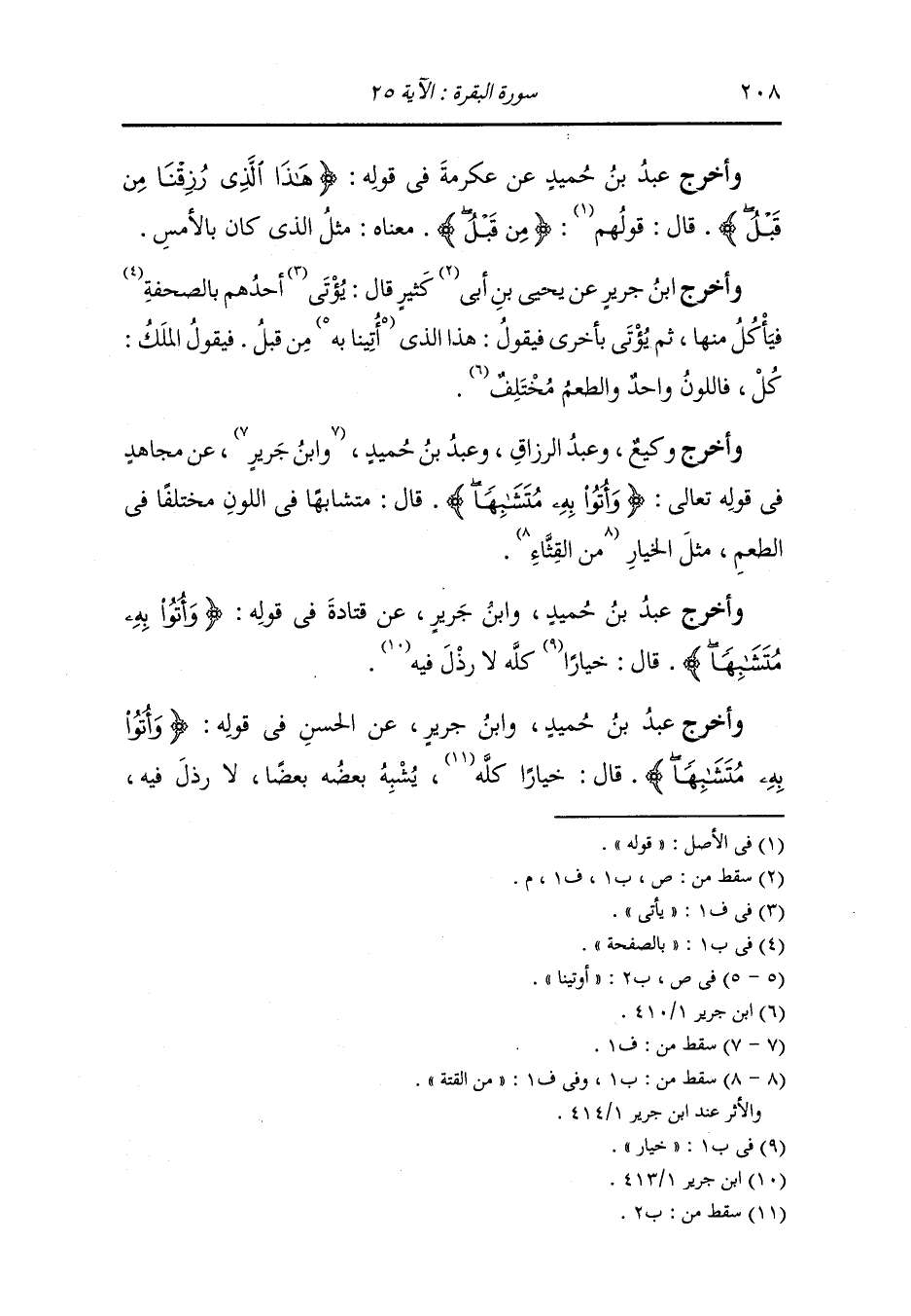 وأخرج عَبد بن حُمَيد ، وَابن جَرِير عن قتادة في قوله {وأتوا به متشابها} قال : خيارا كله لا رذل فيه.