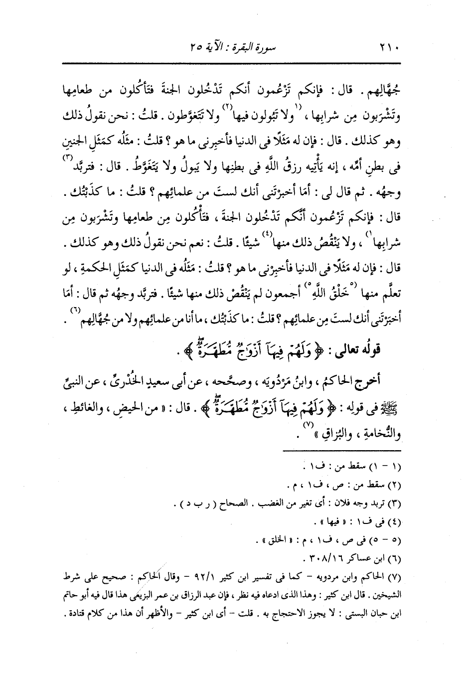 وأخرج الحاكم ، وَابن مردويه وصححه عن أبي سعيد الخدري عن النَّبِيّ صلى الله عليه وسلم في قوله {ولهم فيها أزواج مطهرة} قال : من الحيض والغائط والنخامة والبزاق