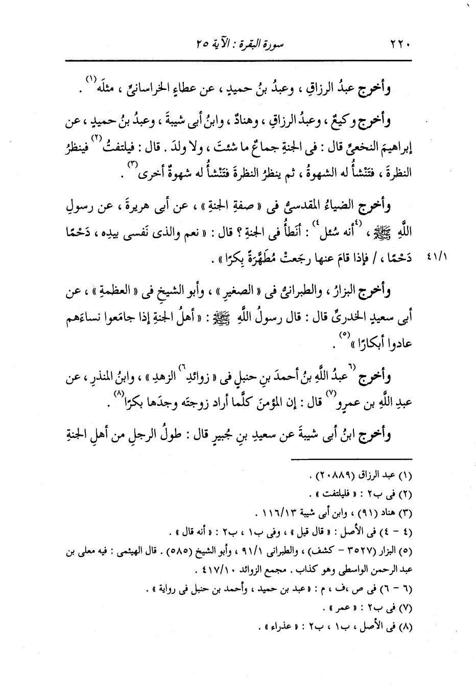 وأخرج عَبد بن حُمَيد وأحمد بن حنبل في زوائد الزهد ، وَابن المنذر عن عبد الله ابن عمرو قال : إن المؤمن كلما أراد زوجته وجدها بكرا.