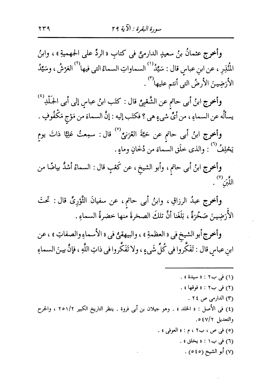 وأخرج عثمان ابن سعيد الدارمي في كتاب الرد على الجهمية ، وَابن المنذر عن ابن عباس قال : سيد السموات السماء التي فيها العرش وسيد الأرضين الأرض التي أنتم عليها.