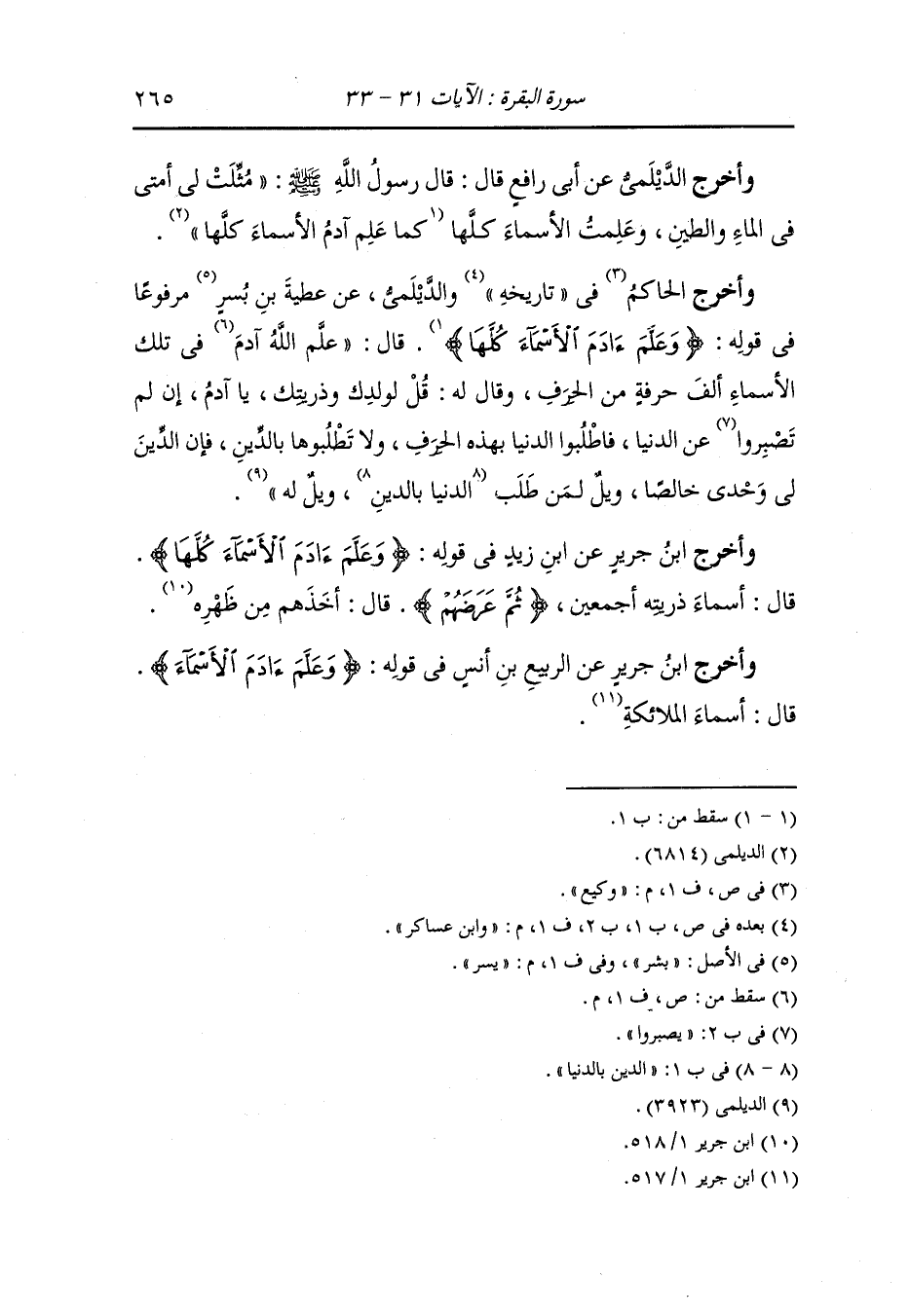 وأخرج ابن جرير عن الربيع بن أنس في قوله {وعلم آدم الأسماء كلها} قال : أسماء الملائكة