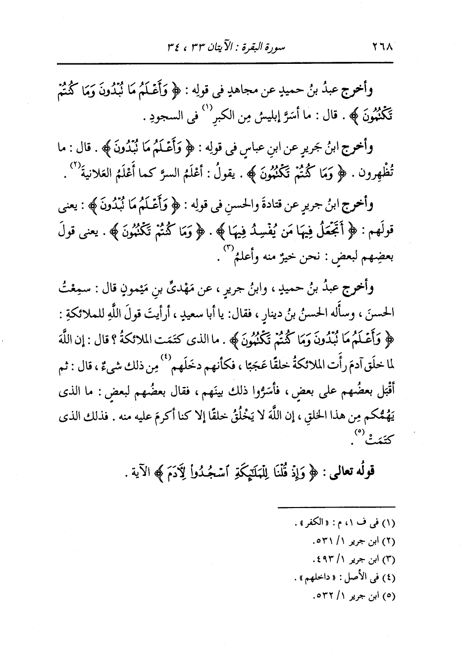 وأخرج ابن جرير عن قتادة والحسن في قوله {ما تبدون} يعني قولهم {أتجعل فيها من يفسد فيها} {وما كنتم تكتمون} يعني قول بعضهم لبعض : نحن خير منه وأعلم.