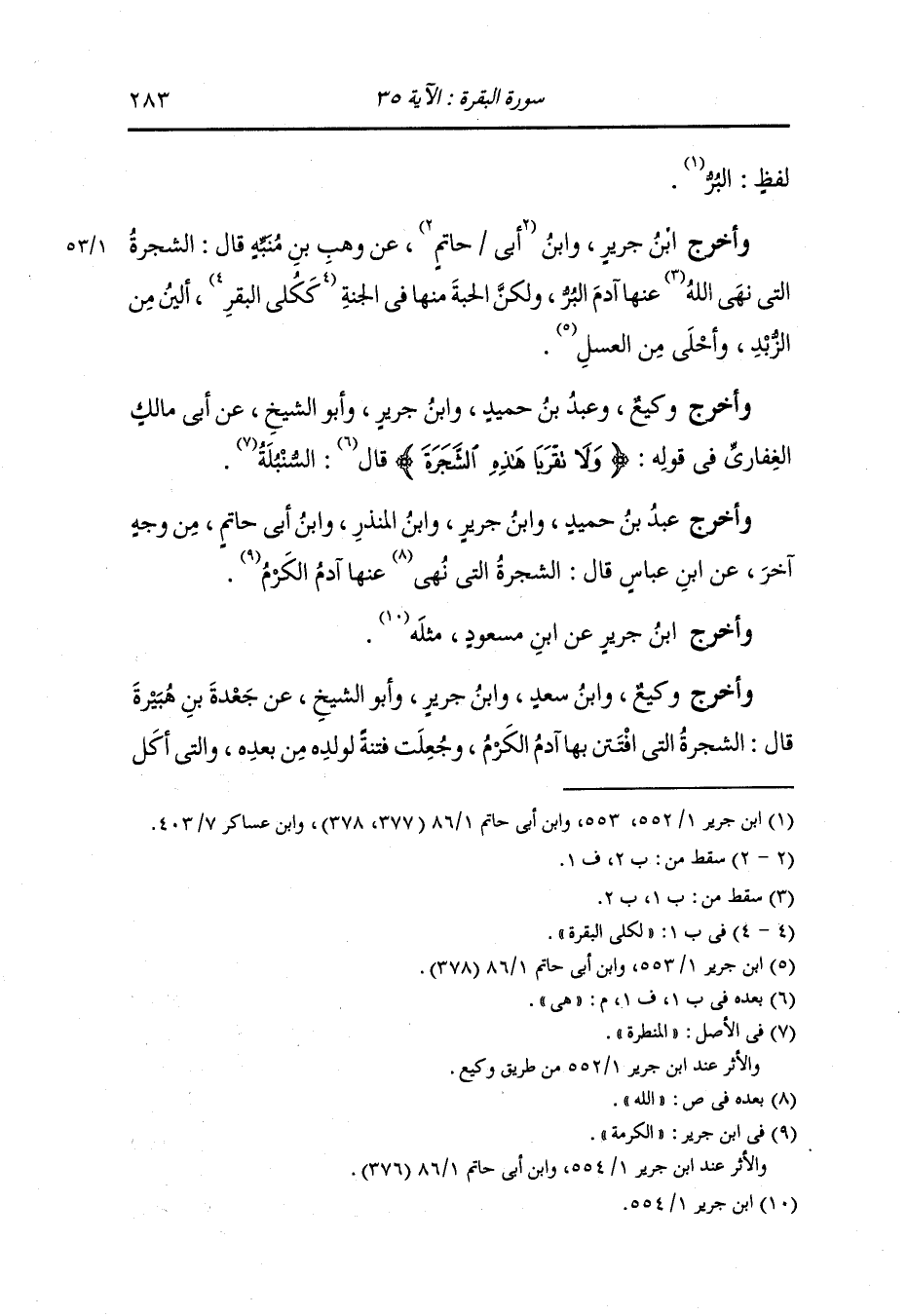 وأخرج ابن جرير عن ابن عباس قال : هي اللوز ، قلت : كذا في النسخة وهي قديمة وعندي إنها تصحفت من الكرم.