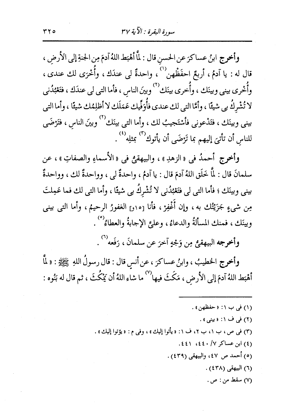 وأخرج الخطيب ، وَابن عساكر عن ابن عباس قال : لما أهبط الله آدم إلى الأرض أكثر ذريته فنمت فاجتمع إليه ذات يوم ولده وولد ولده فجعلوا يتحدثون حوله وآدم ساكت لا يتكلم فقالوا : يا أبانا ما لنا نحن نتكلم وأنت ساكت لا تتكلم فقال : يا بني إن الله لما أهبكني من جواره إلى الأرض عهد إلي فقال : يا آدم أقل الكلام حتى ترجع إلى جواري.
