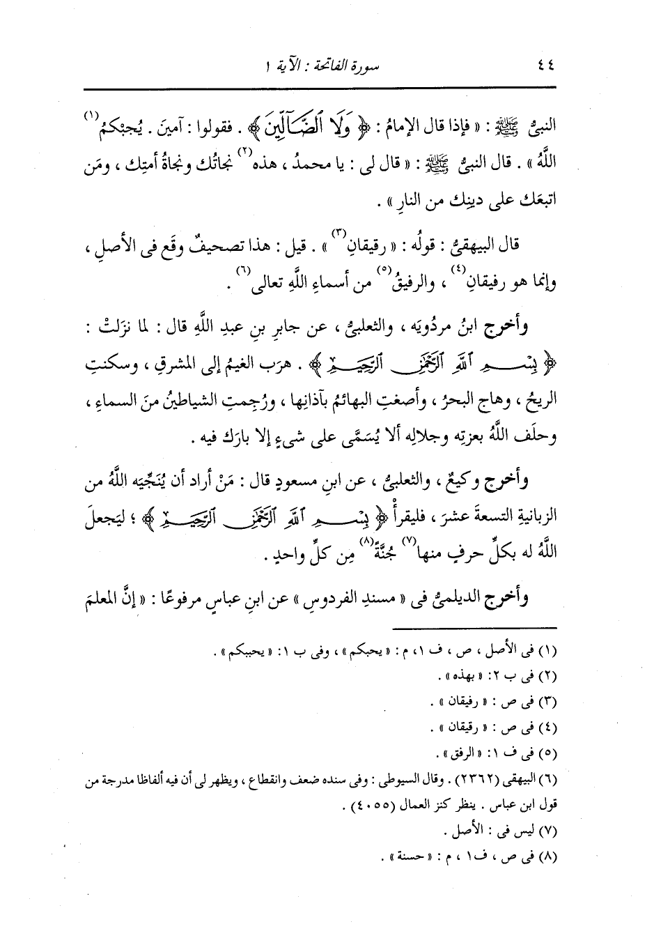 النبي صلى الله عليه وسلم قال لي يا محمد هذه نجاتك ونجاة أمتك ومن اتبعك على دينك من النار قال البيهقي : قوله : رقيقان ، قيل هذا تصحيف وقع في الأصل وإنما هو رفيقان ، والرفيق : من أسماء الله تعالى.