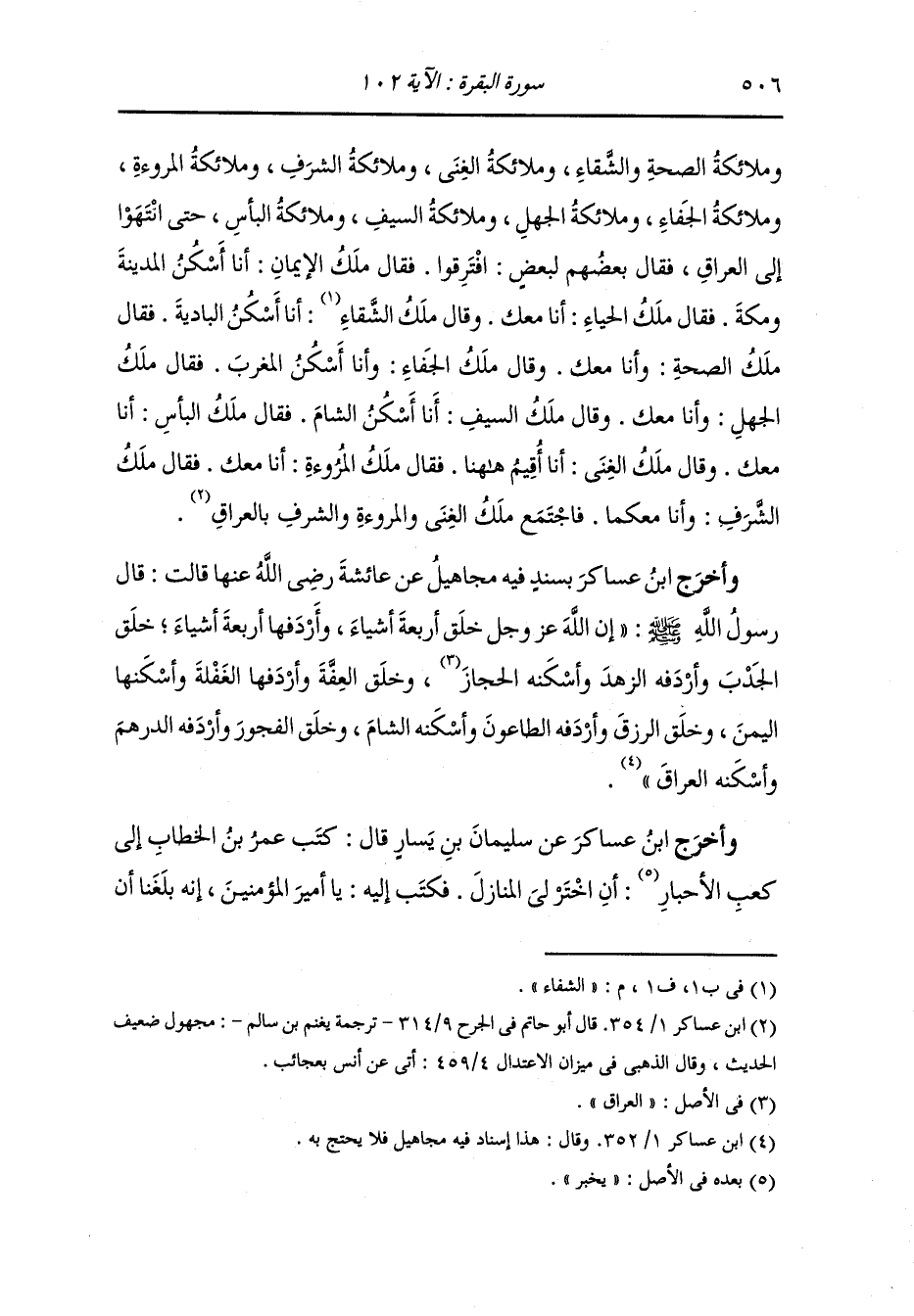 وأخرج ابن عساكر عن حكيم بن جابر قال : أخبرت أن الإسلام قال : أنا لاحق بأرض الشام ، قال الموت : وأنا معك ، قال الملك : وأنا لاحق بأرض العراق ، قال القتل : وأنا معك ، قال الجوع : وأنا لاحق بأرض العرب ، قالت الصحة : وأنا معك.