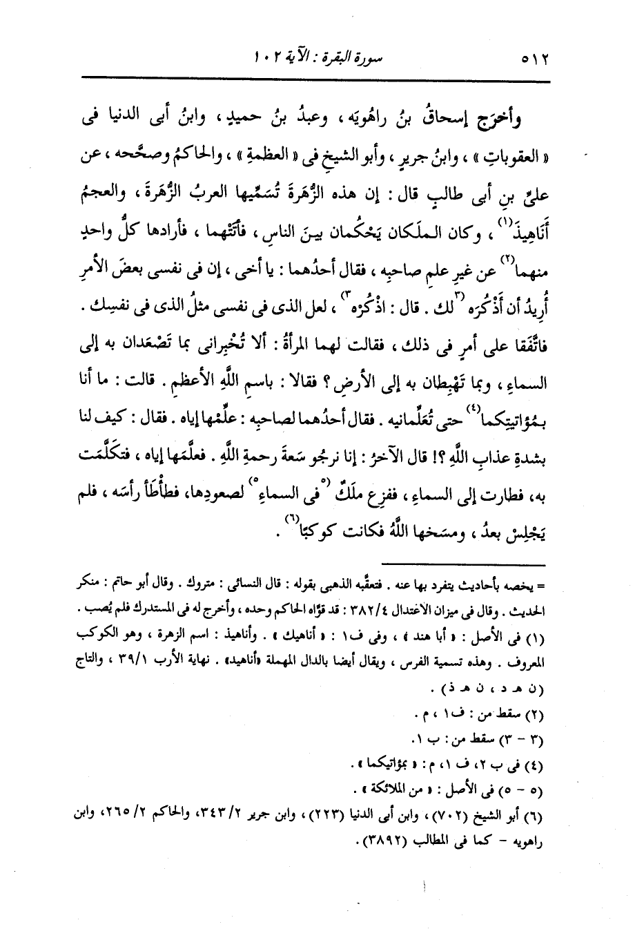 وَأخرَج عبد الرزاق ، وعَبد بن حُمَيد عن ابن عباس قال : إن المرأة التي فتن بها الملكان مسخت فهي هذه الكواكب الحمراء . يعني الزهرة ..