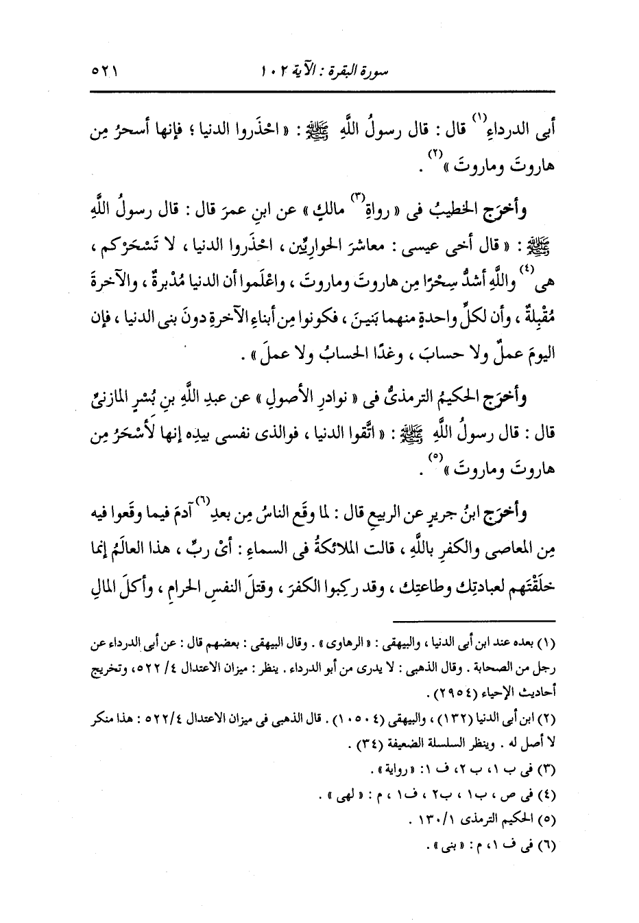 والسرقة والزنا وشرب الخمر فجعلوا يدعون عليهم ولا يعذرونهم ، فقيل لهم : إنهم في غيب فلم يعذروهم فقيل لهم : اختاروا منكم ملكين آمرهما بأمري وأنهاهما عن معصيتي ، فاختاروا هاروت وماروت فأهبطا إلى الأرض وجعل بهما شهوات بني إسرائيل وأمرا أن يعبدا الله ولا يشركا به شيئا ونهيا عن قتل النفس الحرام وأكل المال الحرام والسرقة والزنا وشرب الخمر فلبثا على ذلك في الأرض زمانا يحكمان بين الناس بالحق وذلك في زمان إدريس ، وفي ذلك الزمان امرأة حسنها في سائر الناس كحسن الزهرة في سائر الكواكب وأنها أبت عليهما فخضعا لها بالقول وأراداها على نفسها وأنها أبت إلا أن يكونا على أمرها ودينها وأنهما سألاها عن دينها الذي هي عليه فأخرجت لهما صنما فقالت : هذا أعبده ، فقالا : لا حاجة لنا في عبادة هذا فذهبا فصبرا ما شاء الله ثم أتيا عليها فخضعا لها ما شاء الله بالقول وأراداها على نفسها فقالت : لا إلا أن تكونا على ما أنا عليه ، فقالا : لا حاجة لنا في عبادة هذا ، فلما رأت أنهما قد أبيا أن يعبدا الصنم قالت لهما : اختارا أحدى الخلال الثلاث ، إما أن تعبدا الصنم أو تقتلا النفس أو تشربا الخمر فقالا : كل هذا لا ينبغي وأهون الثلاثه