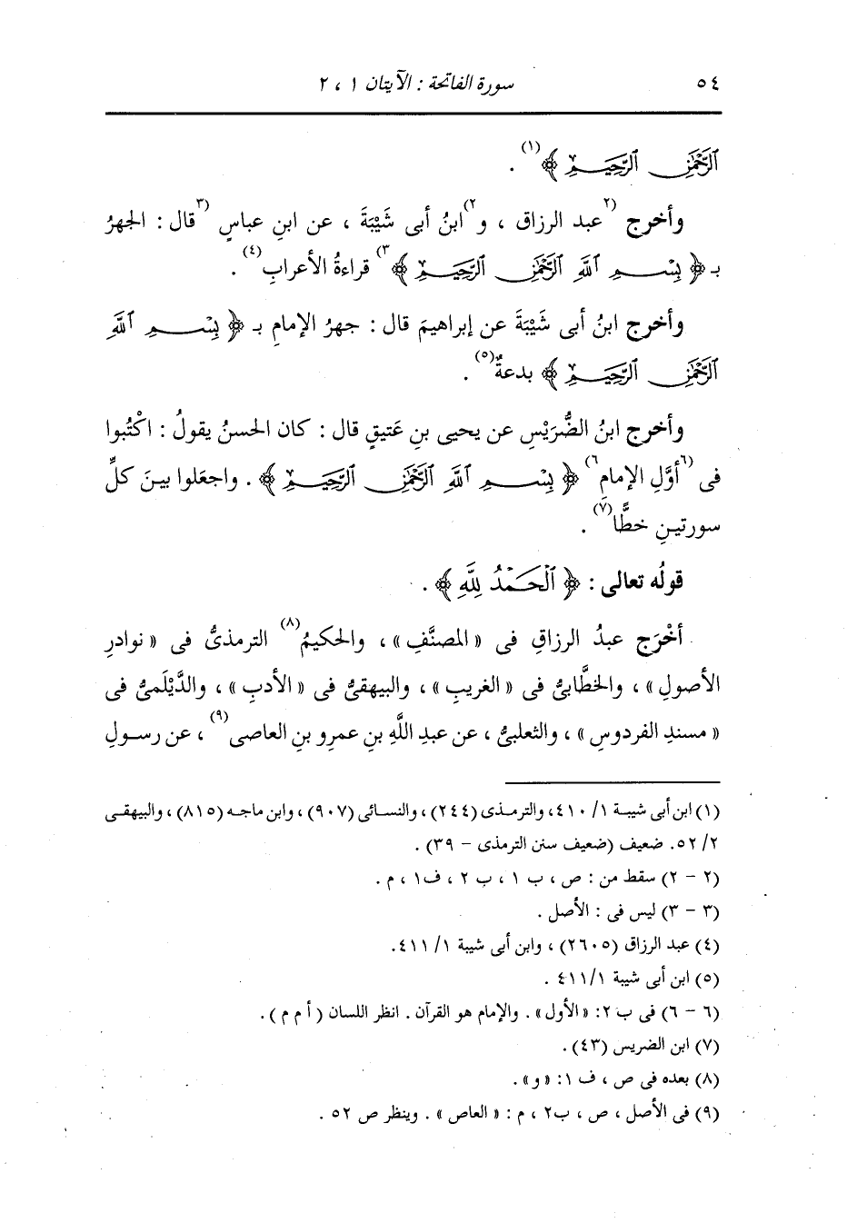 وأخرج عبد الرزاق ابن أبي شيبة عن ابن عباس قال : الجهر {بسم الله الرحمن الرحيم} قراءة الأعراب.