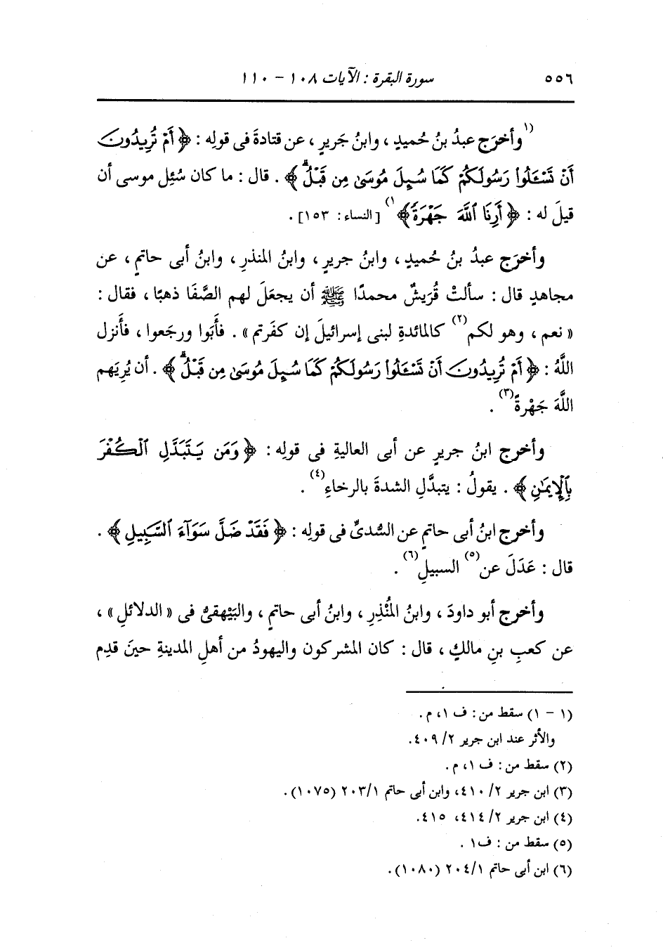 وَأخرَج البخاري ومسلم ، وَابن المنذر ، وَابن أبي حاتم والطبراني والبيهقي في الدلائل عن أسامه بن زيد قال كان رسول الله صلى الله عليه وسلم وأصحابه يعفون عن المشركين وأهل الكتاب كما أمرهم الله ويصبرون على الأذى قال الله (ولتسمعن من الذين أوتوا الكتاب من قبلكم ومن الذين أشركوا أذى كثيرا) (آل عمران الآيه 186) وقال {ود كثير من أهل الكتاب لو يردونكم من بعد إيمانكم كفارا حسدا من عند أنفسهم من بعد ما تبين لهم الحق فاعفوا واصفحوا حتى يأتي الله بأمره} وكان رسول الله صلى الله عليه وسلم يتأول في العفو ما أمره الله به حتى أذن الله فيهم بقتل فقتل الله به من قتل من صناديد قريش.