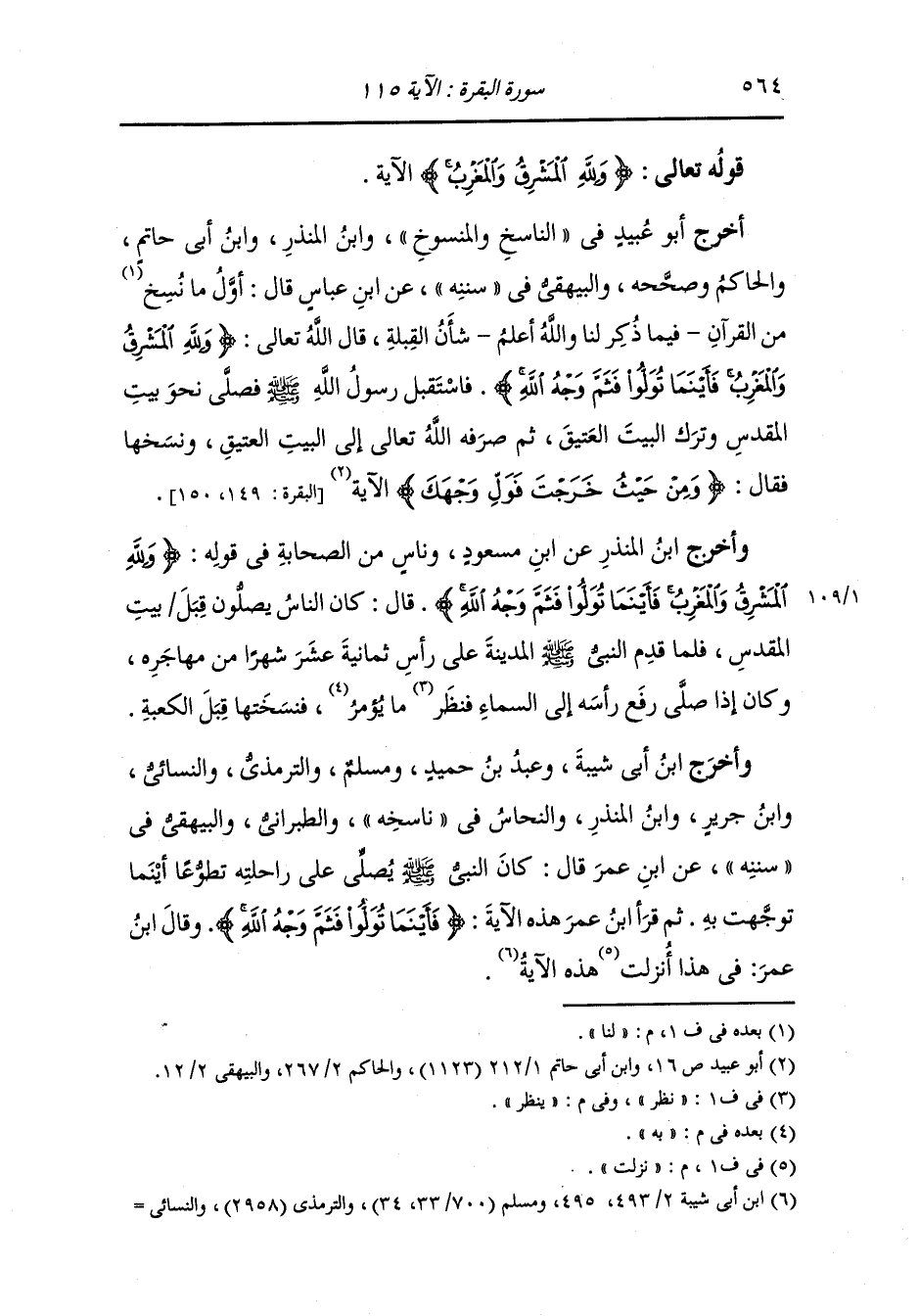 وأخرج ابن جرير ، وَابن أبي حاتم والدارقطني والحاكم وصححه عن ابن عمر قال : أنزلت {فأينما تولوا فثم وجه الله} أن تصلي حيثما توجهت بك راحلتك في التطوع.