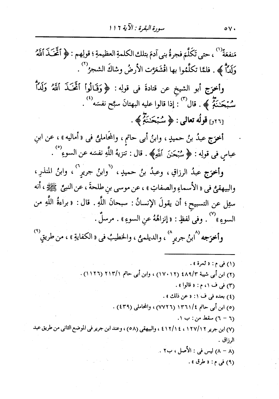 وَأخرَج ابن مردويه من طريق سفيان الثوري عن عبد الله بن عبيد الله بن موهب أنه سمع طلحة قال سئل رسول الله صلى الله عليه وسلم عن {سبحان الله} قال : تنزيه الله عن كل سوء.