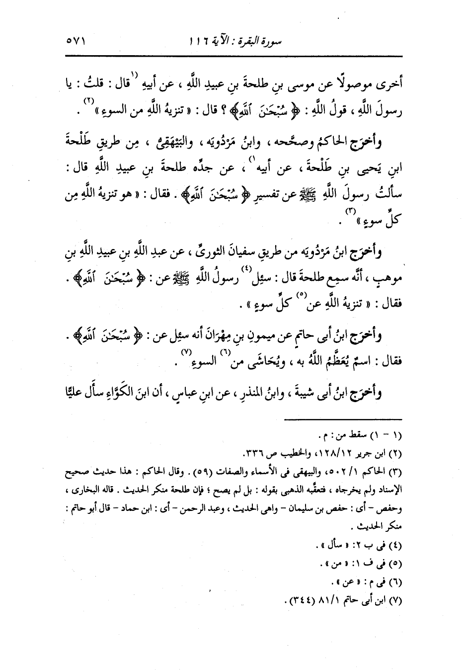 عن قوله {سبحان الله} فقال علي : كلمة رضيها الله لنفسه.