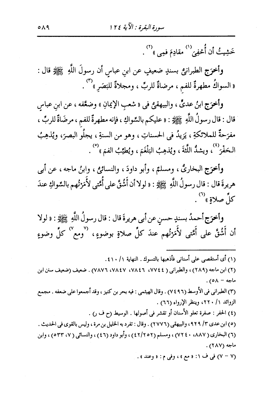 وأخرج أحمد وأبو يعلى بسند جيد عن ابن عباس عن النَّبِيّ صلى الله عليه وسلم قال لقد أمرت بالسواك حتى ظننت أنه ينزل علي به قرآن أو وحي