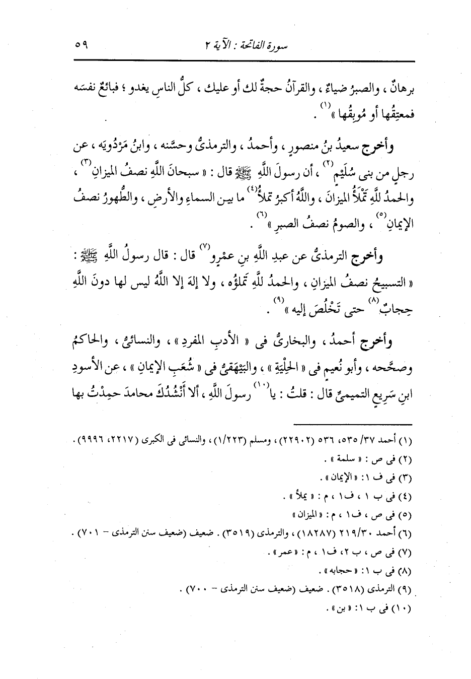 وأخرج سعيد بن منصور وأحمد والترمذي وحسنه ، وَابن مردويه عن رجل من بني سليم أن رسول الله صلى الله عليه وسلم قال سبحان الله نصف الميزان والحمد لله تملأ الميزان والله أكبر يملأ مابين السماء والأرض والطهور نصف الميزان والصوم نصف الصبر.
