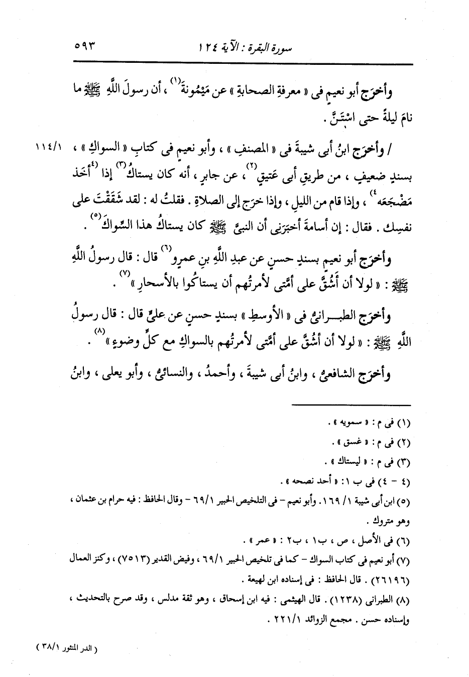 وأخرج أحمد بسند ضعيف عن قثم أو تمام بن عباس قال : أتينا النَّبِيّ صلى الله عليه وسلم فقال ما لكم تأتوني قلحا لا تسوكون لولا أن أشق على أمتي لفرضت عليهم السواك كما فرضت عليهم الوضوء.