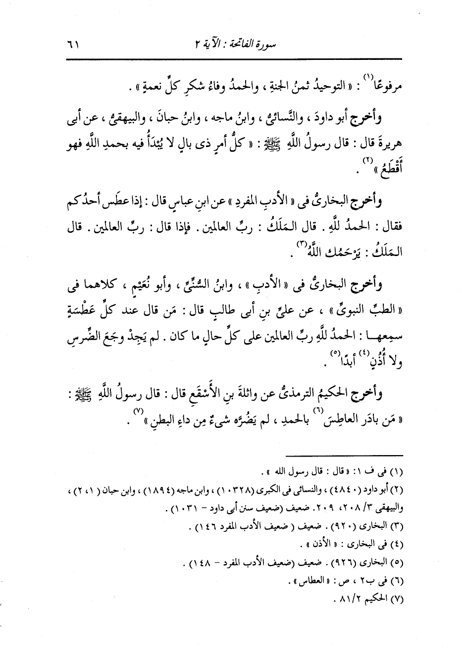 مرفوعا التوحيد ثمن الجنة والحمد وفاء شكر كل نعمة.