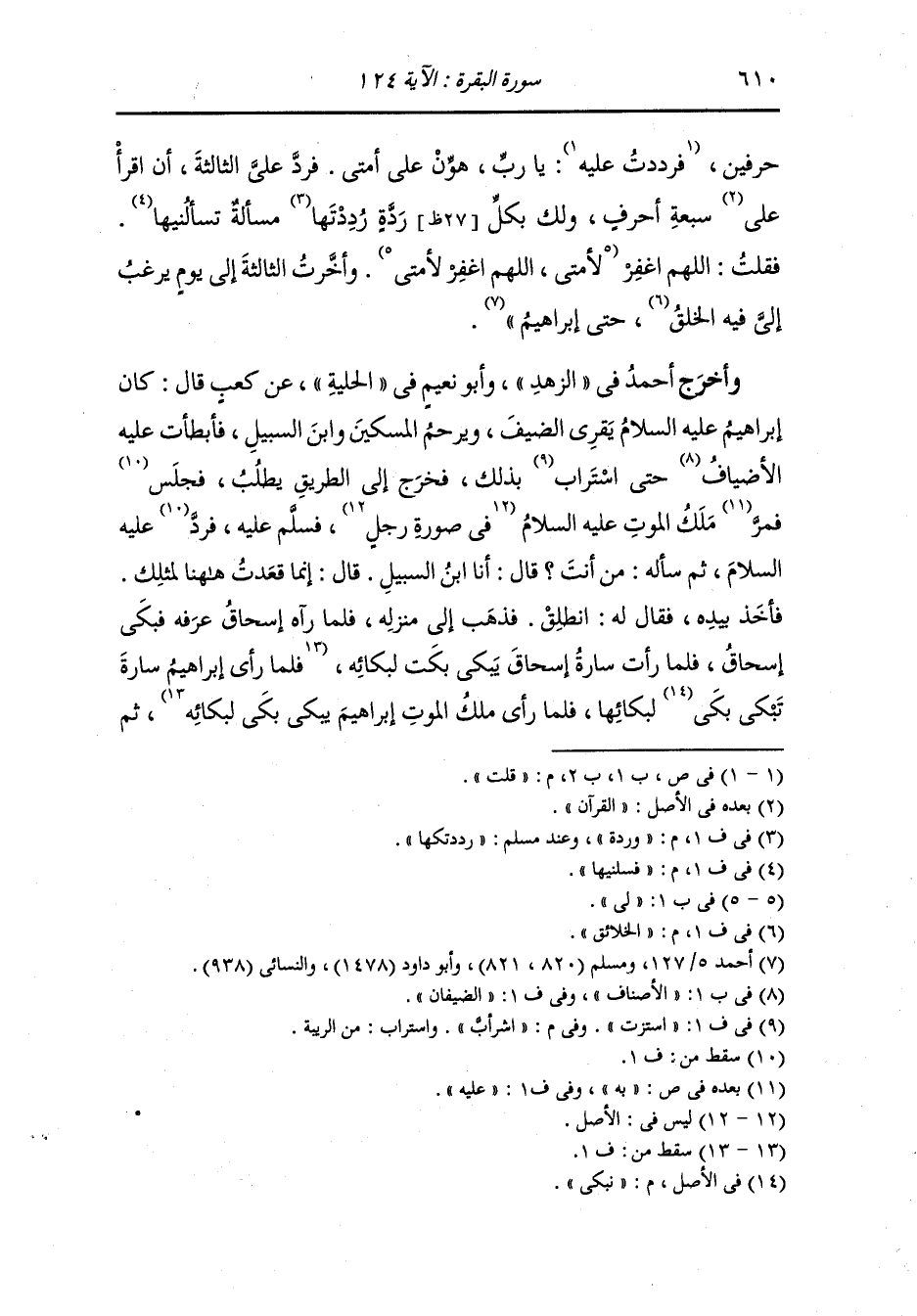 صعد ملك الموت فلما ارتقى غضب إبراهيم فقال : بكيتم في وجه ضيفي حتى ذهب فقال إسحاق : لا تلمني يا أبت فإني رأيت ملك الموت معك لا أرى أجلك إلا قد حضر فارث في أهلك أي أوصه وكان لأبراهيم بيت يتعبد فيه فإذا خرج أغلقه لا يدخله غيره فجاء إبراهيم ففتح بيته الذي يتعبد فيه فإذا هو برجل جالس فقال إبراهيم : من أدخلك بإذن من دخلت قال : بإذن رب البيت ، قال : رب البيت أحق به ثم تنحى في ناحية البيت فصلى ودعا كما كان يصنع وصعد ملك الموت فقيل له : ما رأيت قال : يا رب جئتك من عند عبدك ليس بعده في الأرض خير ، قيل له : ما رأيت منه قال : ما ترك خلقا من خلقك إلا قد دعا له بخير في دينه وفي معيشته ، ثم مكث إبراهيم عليه السلام ما شاء الله ثم جاء ففتح بابه فإذا هو برجل جالس قال له : من أنت قال : إنما أنا ملك الموت ، قال إبراهيم : إن كنت صادقا فأرني آية أعرف أنك ملك الموت ، قال : اعرض بوجهك يا إبراهيم