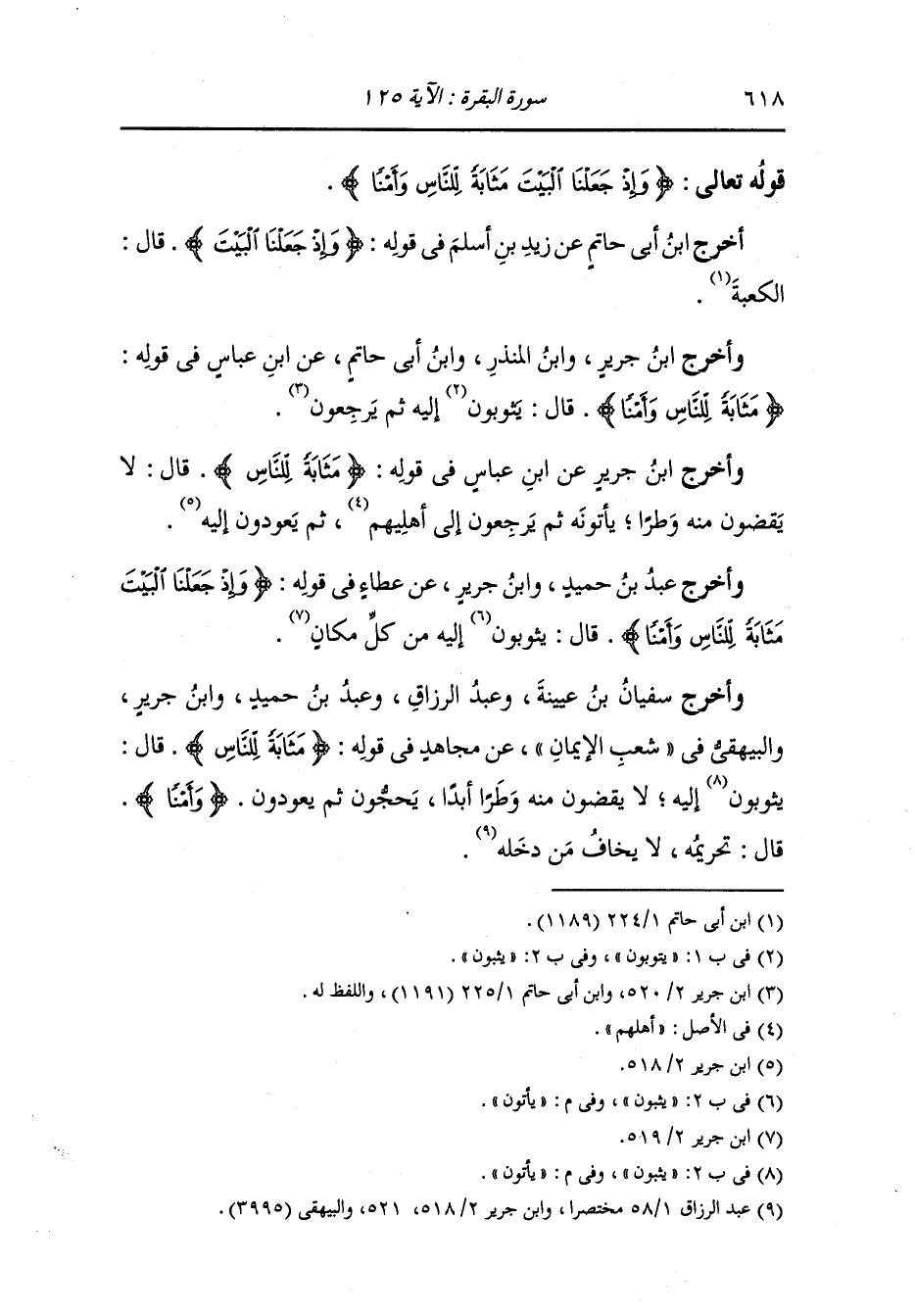 وأخرج ابن جرير عن أبي العالية في قوله {وأمنا} قال : أمنا من العدوان يحمل فيه السلاح وقد كانوا في الجاهلية يتخطف الناس من حولهم وهم آمنون ، أما قوله تعالى : {واتخذوا من مقام إبراهيم مصلى}.