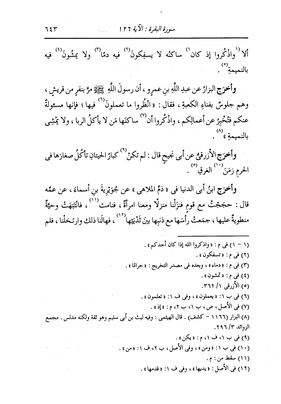 وأخرج ابن أبي شيبة والأزرقي عن عبد الله بن الزبير قال : إن كانت الأمة من بني إسرائيل لتقدم مكة فإذا بلغت ذا طوى خلعت نعليها تعظيما للحرم.