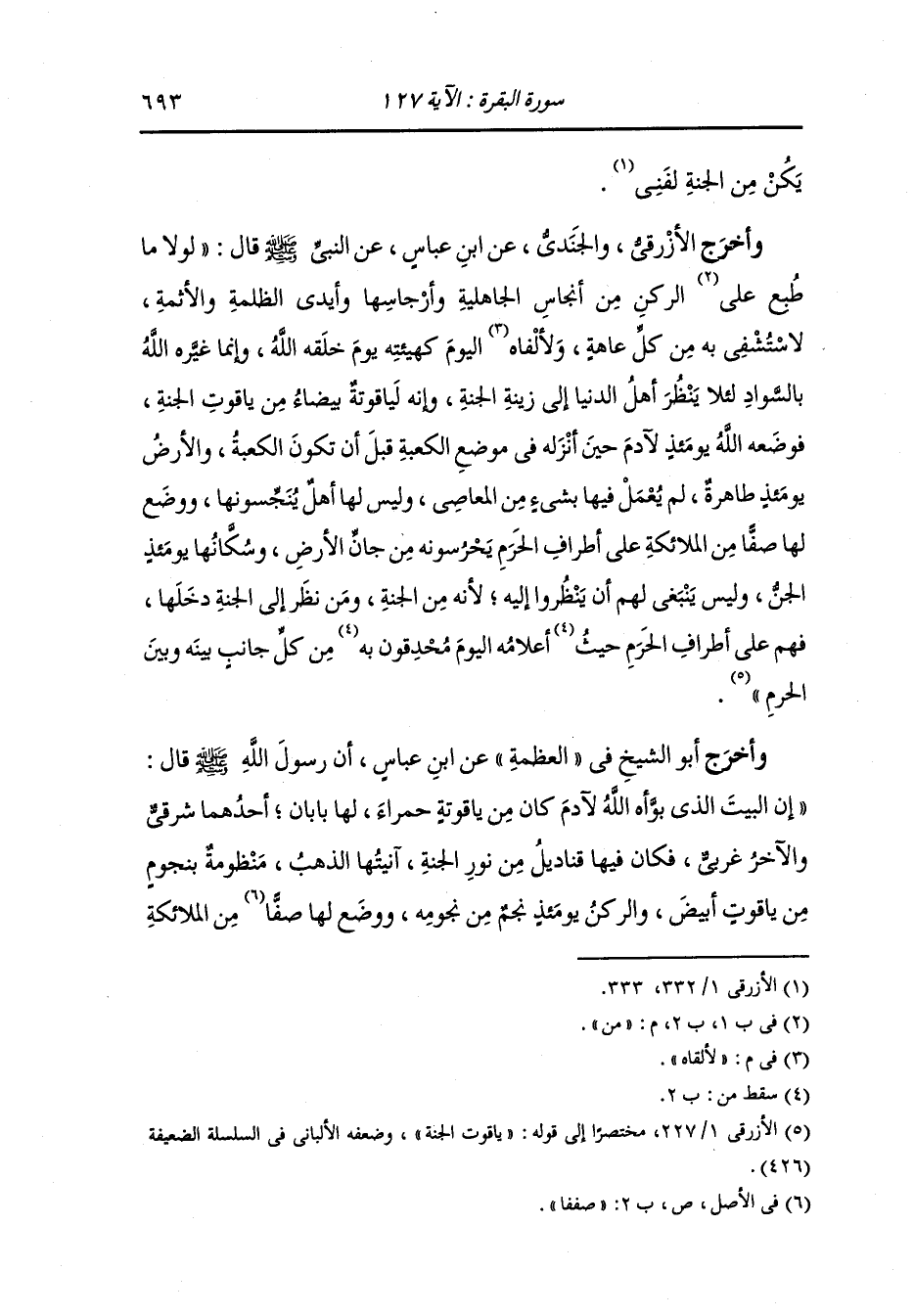 وأخرج الأزرقي عن ابن عباس قال : ليس في الأرض من الجنة إلا الركن الأسود والمقام فهما جوهرتان من جوهر الجنة ولولا ما مسهما من أهل الشرك ما مسهما ذو عاهة إلا شفاه الله تعالى.
