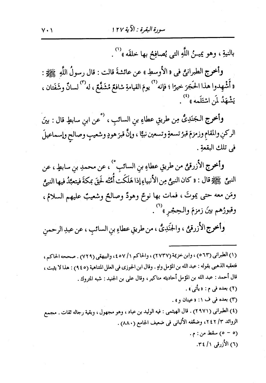 وأخرج الأزرقي عن مقاتل قال : في المسجد الحرام بين زمزم قبر سبعين نبيا منهم هود وصالح واسماعيل وقبر آدم وابراهيم وإسحاق ويعقوب