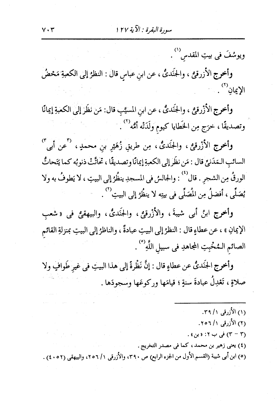 وأخرج ابن أبي شيبة والجندي ، عَن طاووس قال : النظر إلى هذا البيت أفضل من عبادة الصائم القائم الدائم المجاهد في سبيل الله.