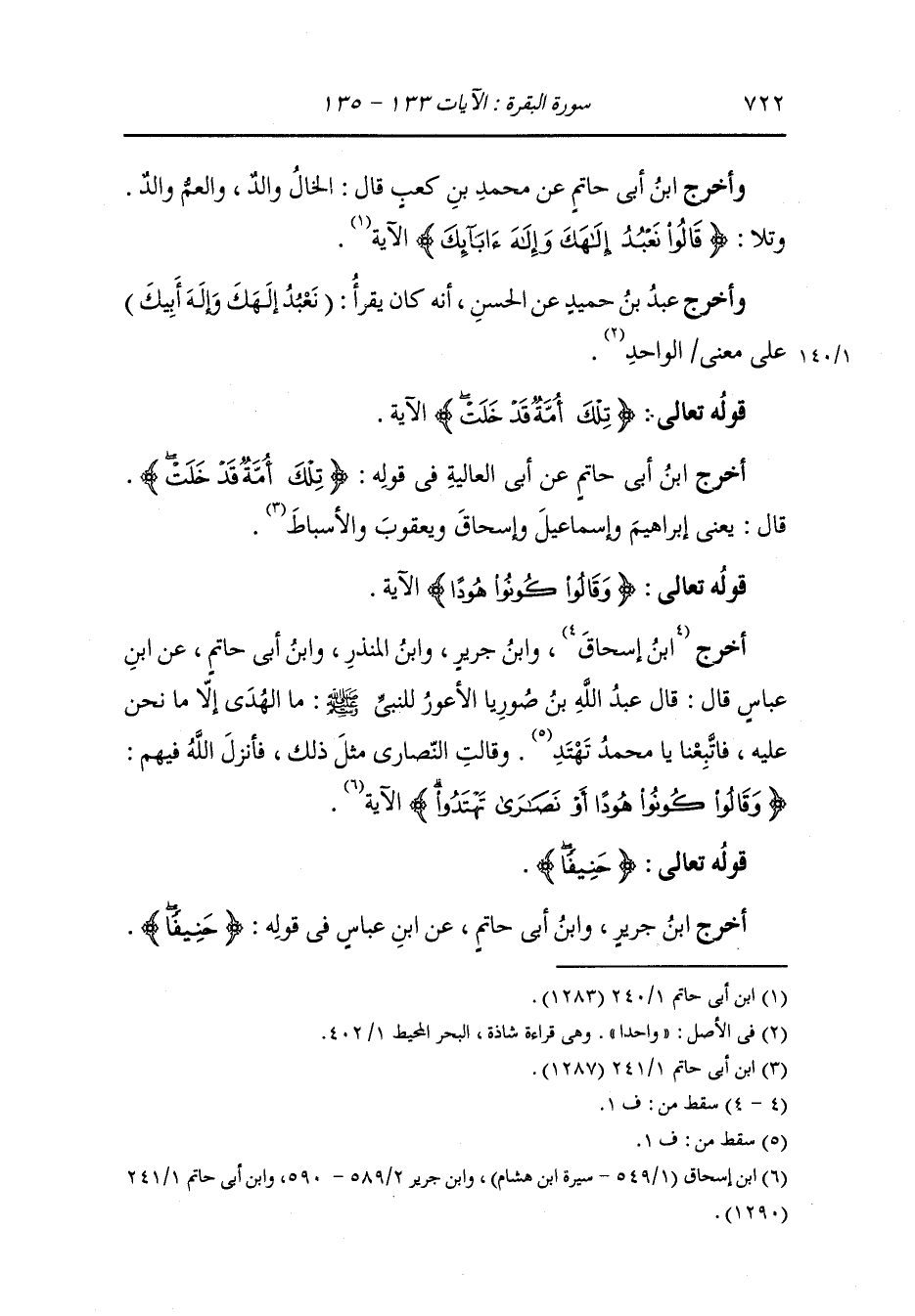 وأخرج ابن أبي حاتم عن أبي قلابة قال : الحنيف الذي يؤمن بالرسل كلهم من أولهم إلى آخرهم.