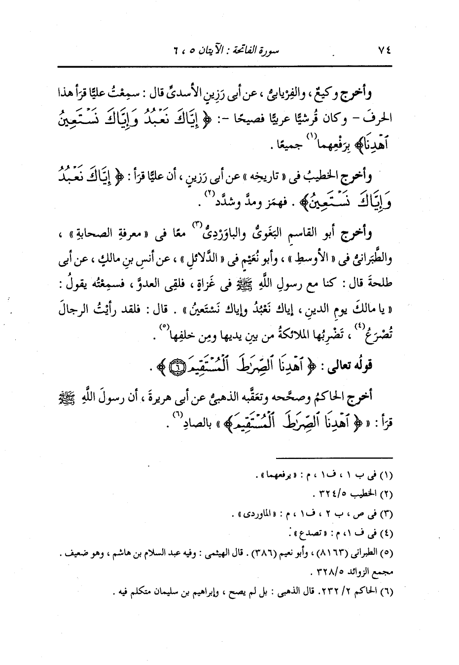 وأخرج الخطيب في تاريخه عن أبي رزين أن عليا قرأ {إياك نعبد وإياك نستعين} فهمز ومد وشد.
