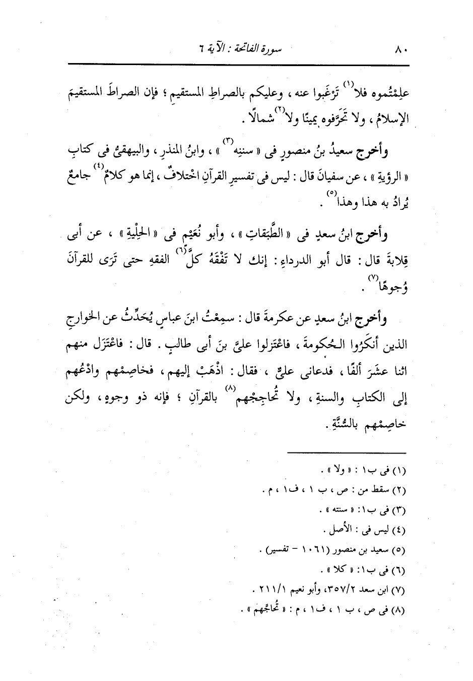 وَأخرَج ابن سعد في الطبقات وأبو نعيم في الحلية عن أبي قلابة قال : قال أبو الدرداء : إنك لاتفقه كل الفقه حتى ترى للقرآن وجوها.