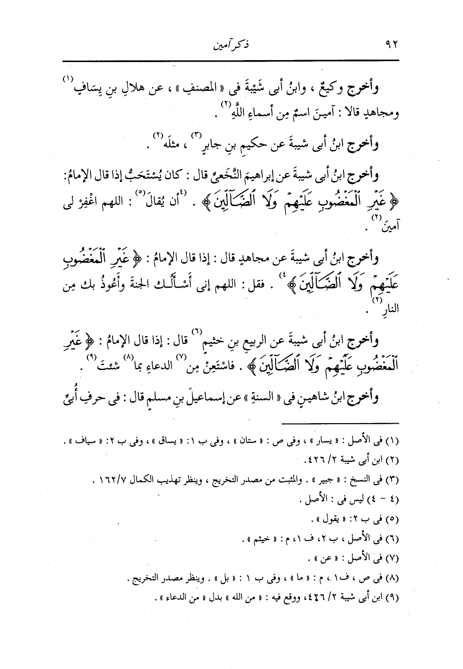 وأخرج ابن أبي شيبة عن إبراهيم النخعي قال : كان يستحب إذا قال الإمام {غير المغضوب عليهم ولا الضالين} أن يقال : اللهم اغفر لي {آمين}.