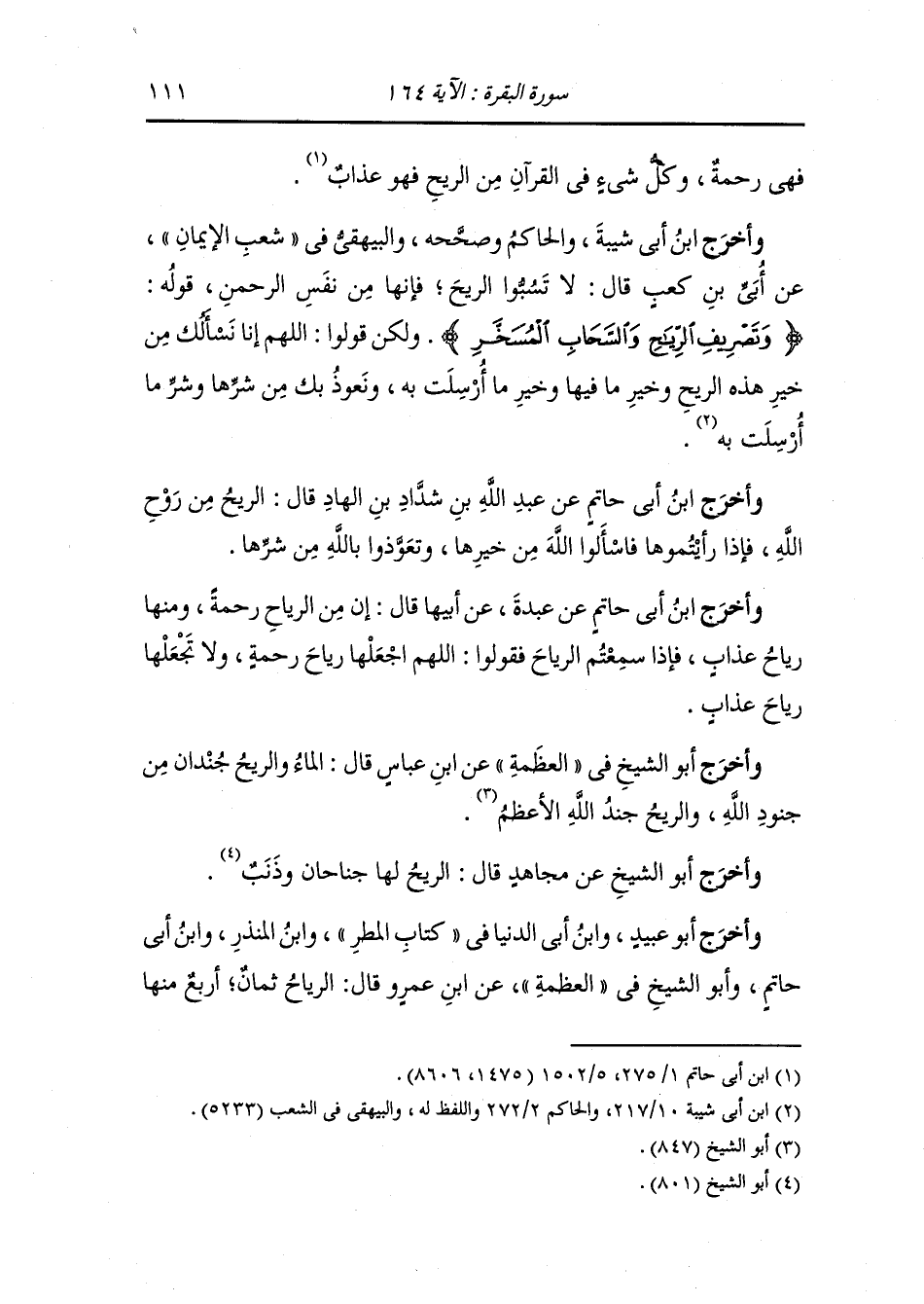 أخرج عَبد بن حُمَيد ، وَابن جَرِير ، وَابن أبي حاتم عن قتادة في قوله {وتصريف الرياح} قال : إذا شاء جعلها رحمة لواقح للسحاب ونشرا بين يدي رحمته وإذا شاء جعلها عذابا ريحا عقيما لا تلقح.