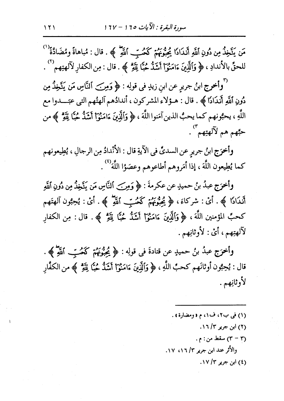 قوله تعالى : ومن الناس من يتخذ من دون الله أندادا يحبونهم كحب الله والذين آمنوا أشد حبا لله ولو يرى الذين ظلموا إذ يرون العذاب أن القوة لله جميعا وأن الله شديد العذاب * إذ تبرأ الذين اتبعوا من الذين اتبعوا ورأوا العذاب وتقطعت بهم الأسباب * وقال الذين اتبعوا لو أن لنا كرة فنتبرأ منهم كما تبرءوا منا كذلك يريهم الله أعمالهم حسرات عليهم وما هم بخارجين من النار.