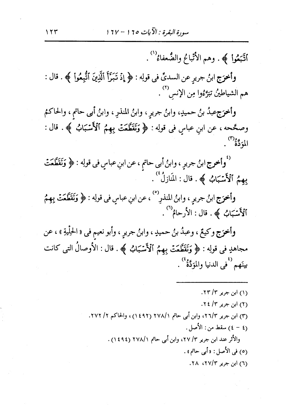 وأخرج عَبد بن حُمَيد ، وَابن جَرِير عن قتادة في قوله {إذ تبرأ الذين اتبعوا} قال : هم الجبابرة والقادة والرؤوس في الشر والشرك {من الذين