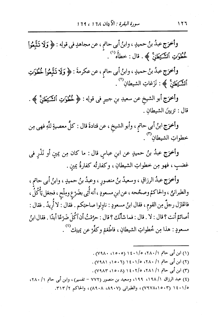 وأخرج ابن أبي حاتم عن ابن عباس قال : ما خالف القرآن فهو من خطوات الشيطان