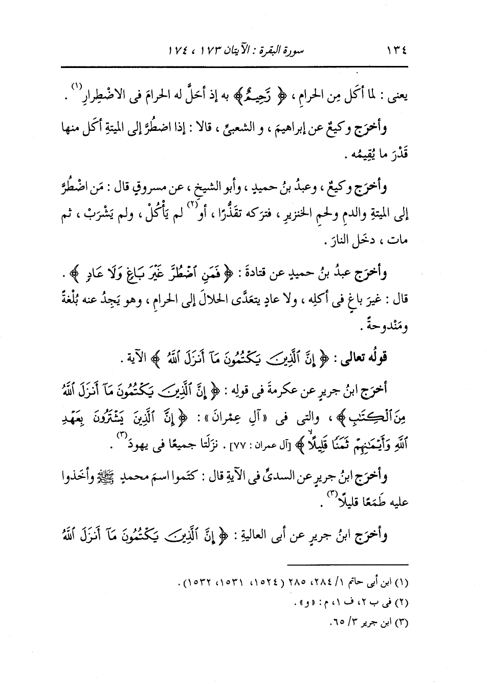 وأخرج ابن أبي حاتم عن ابن عباس في قوله {فمن اضطر} يعني إلى شيء مما حرم {غير باغ ولا عاد} يقول : من أكل شيئا من هذه وهو مضطر فلا حرج ومن أكله وهو غير مضطر فقد بغى واعتدى.