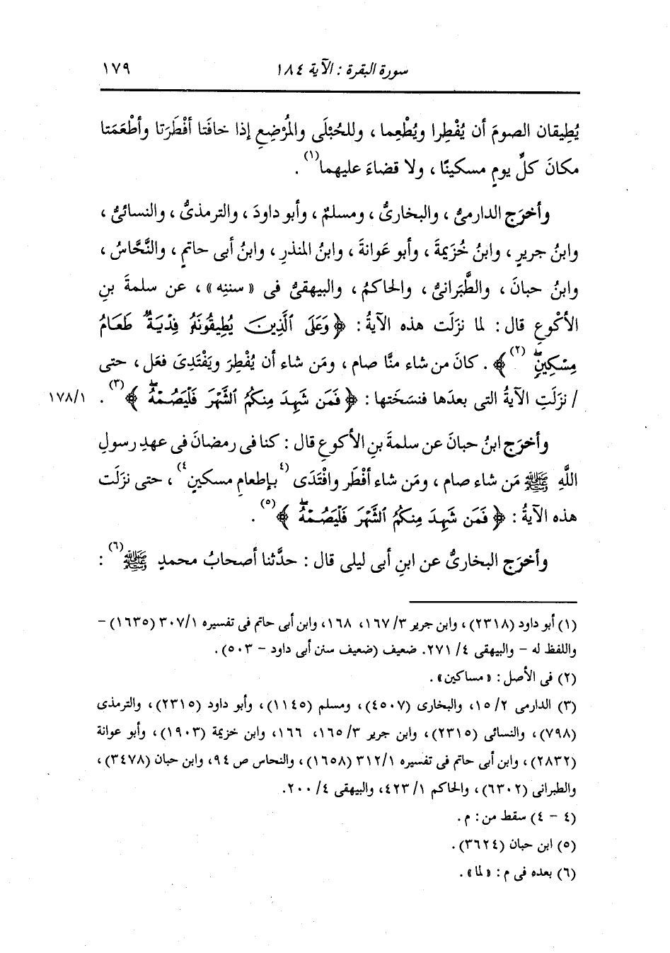 وأخرج أبو داود عن ابن عباس {وعلى الذين يطيقونه فدية} ومن شاء منهم أن يفتدي بطعام مسكين افتدى وتم له صومه فقال {فمن تطوع خيرا فهو خير له وأن تصوموا خير لكم} وقال {فمن شهد منكم الشهر فليصمه} الآية.