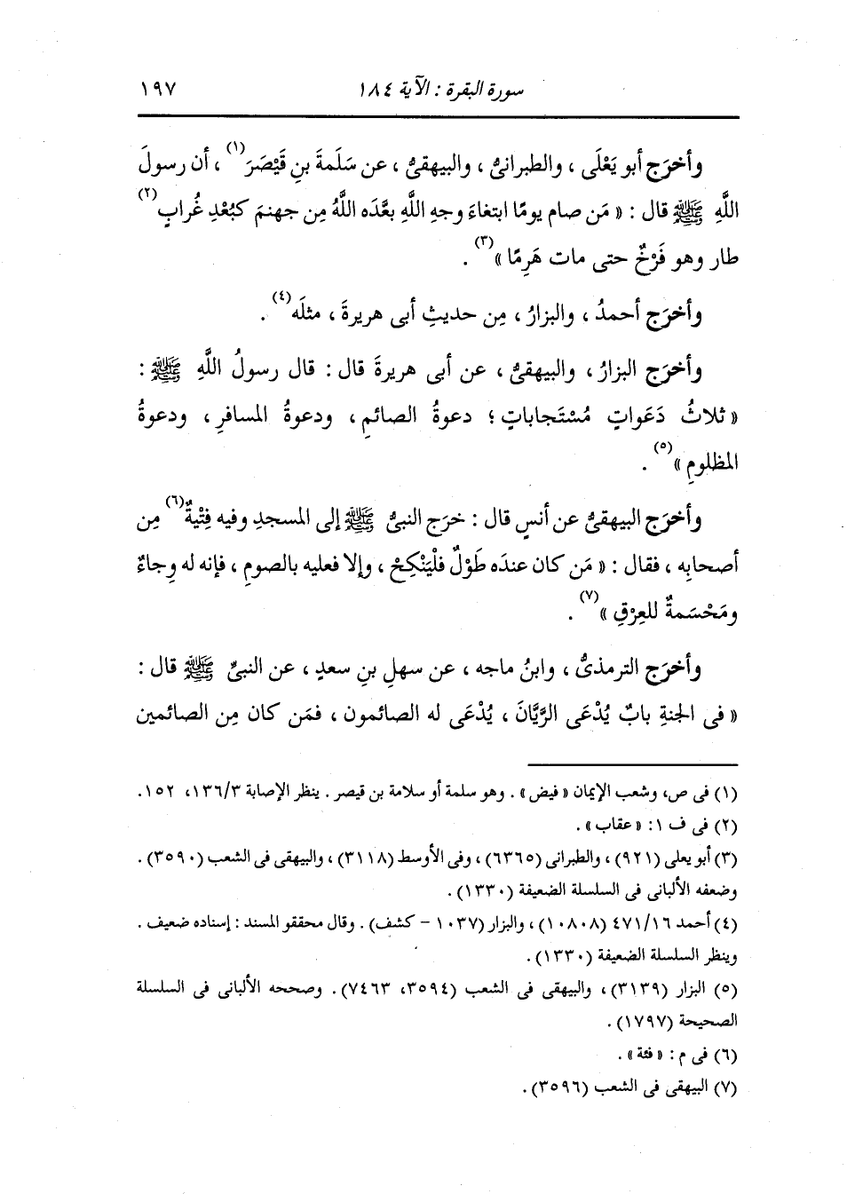 وأخرج ابن سعد ، وَابن أبي شيبة والترمذي وصححه والنسائي ، وَابن ماجه والبيهقي عن أم عمارة بنت كعب أن النَّبِيّ صلى الله عليه وسلم دخل عليها فقربت إليه طعاما فقال : كلي ، فقالت : إني صائمة ، فقال : إن الصائم إذا أكل عنده صلت عليه الملائكة حتى يفرغوا أو يقضوا.