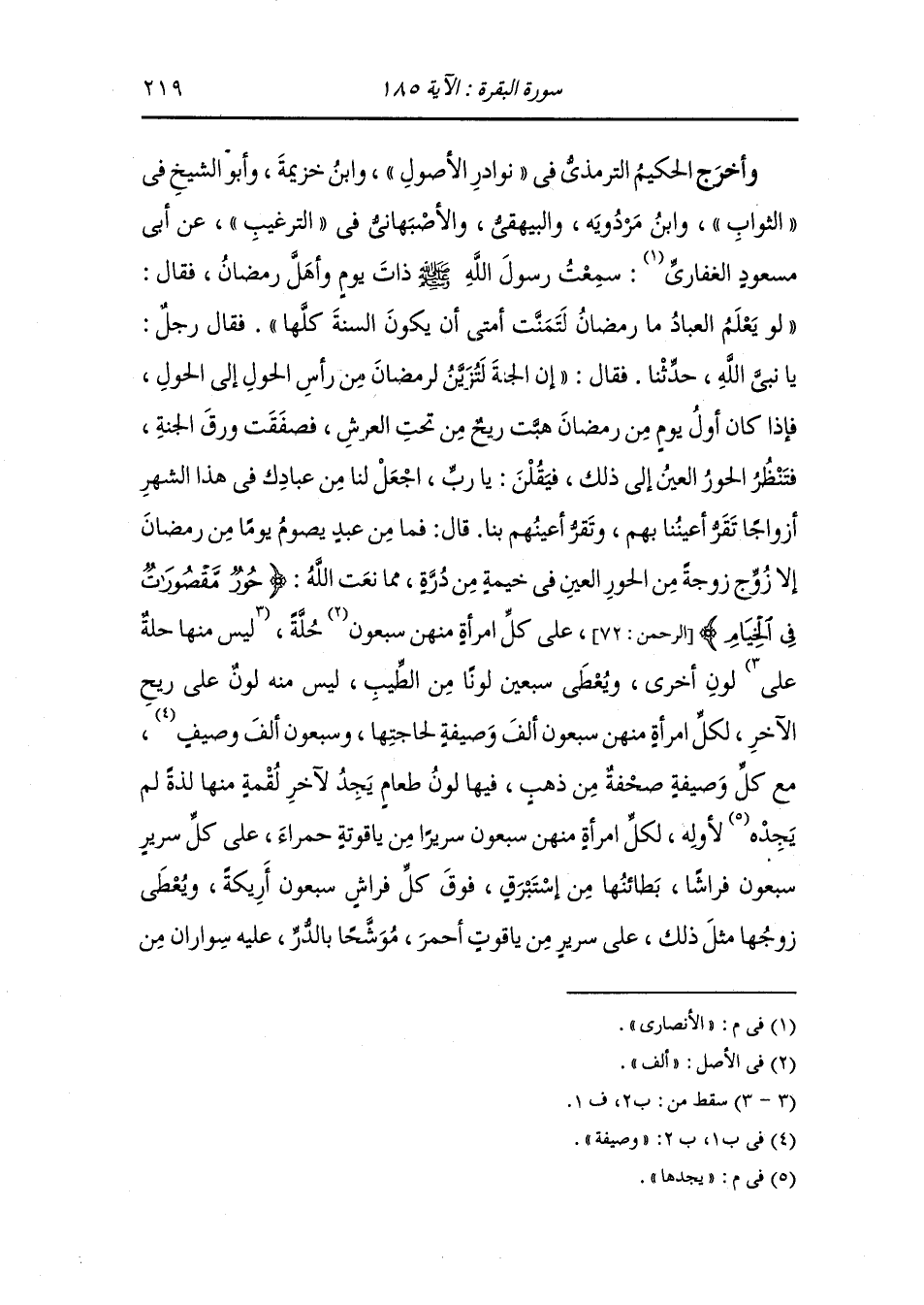 وأخرج الدارقطني في الإفراد والطبراني وأبو نعيم في الحلية والبيهقي ، وَابن عساكر عن ابن عمرو أن النَّبِيّ صلى الله عليه وسلم قال : إن الجنة لتزخرف لرمضان من رأس الحول إلى حول قابل فإذا كان أول يوم من رمضان هبت ريح تحت العرش من ورق الجنة على الحور العين فيقلن : يا رب اجعل لنا من عبادك أزواجا تقر بهم أعيننا وتقر أعينهم بنا
