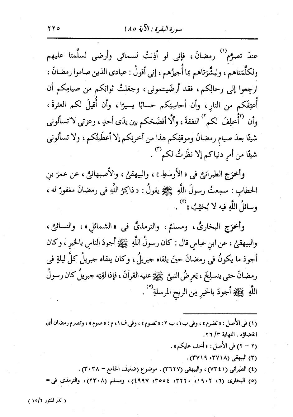 وأخرج البيهقي في الشعب عن كعب الأحبار قال : أوحى الله إلى موسى عليه السلام : إني افترضت على عبادي الصيام وهو شهر رمضان ، يا موسى من وافى القيامة وفي صحيفته عشر رمضانات فهو من الأبدال ومن وافى القيامه وفي صحيفته عشرون رمضانا فهو من المخبتين ومن وافى القيامة وفي صفحته ثلاثون رمضانا فهو من أفضل الشهداء عندي ثوابا يا موسى إني آمر حملة العرش إذا دخل شهر رمضان أن يمسكوا عن العبادة فكلما دعا صائمو رمضان بدعوة وأن يقولوا آمين وإني أوجبت على نفسي أن لا أرد دعوة صائمي رمضان ، يا موسى إني ألهم في رمضان السموات والأرض والجبال والدواب والهوام أن يستغفروا لصائمي رمضان ، يا موسى اطلب ثلاثة ممن يصوم رمضان فصل معهم وكل واشرب معهم فإني لا أنزل عقوبتي ولا نقمتي في بقعة فيها ثلاثة ممن يصوم رمضان ، يا موسى إن كنت مسفرا فاقدم وإن كنت مريضا فمرهم أن يحملوك وقل للنساء والحيض والصبيان الصغار أن يبرزوا معك حيث يبرز صائمو رمضان من
