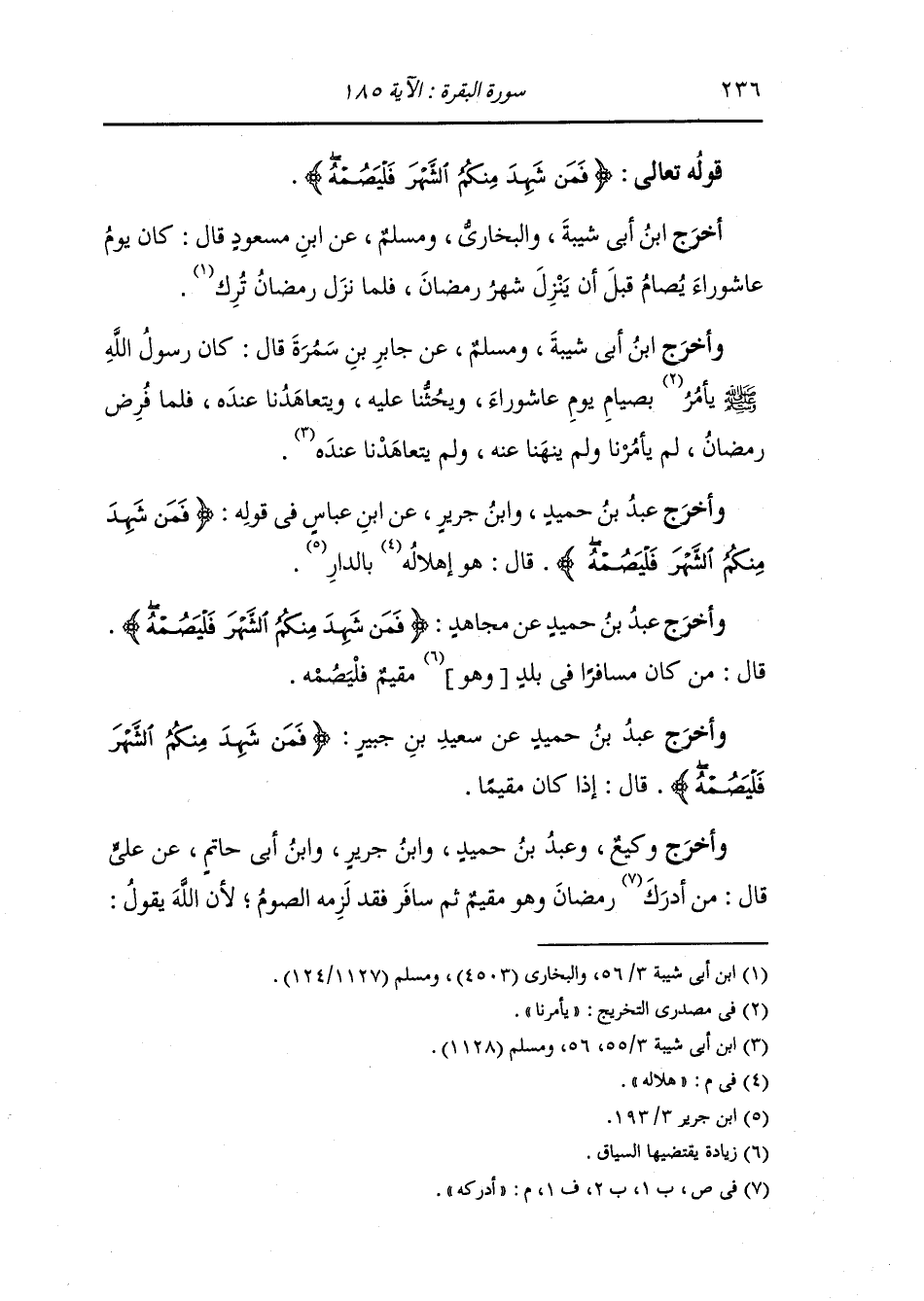 وأخرج ابن أبي حاتم عن الضحاك {شهر رمضان الذي أنزل فيه القرآن} يقول : الذي أنزل صومه في القرآن.