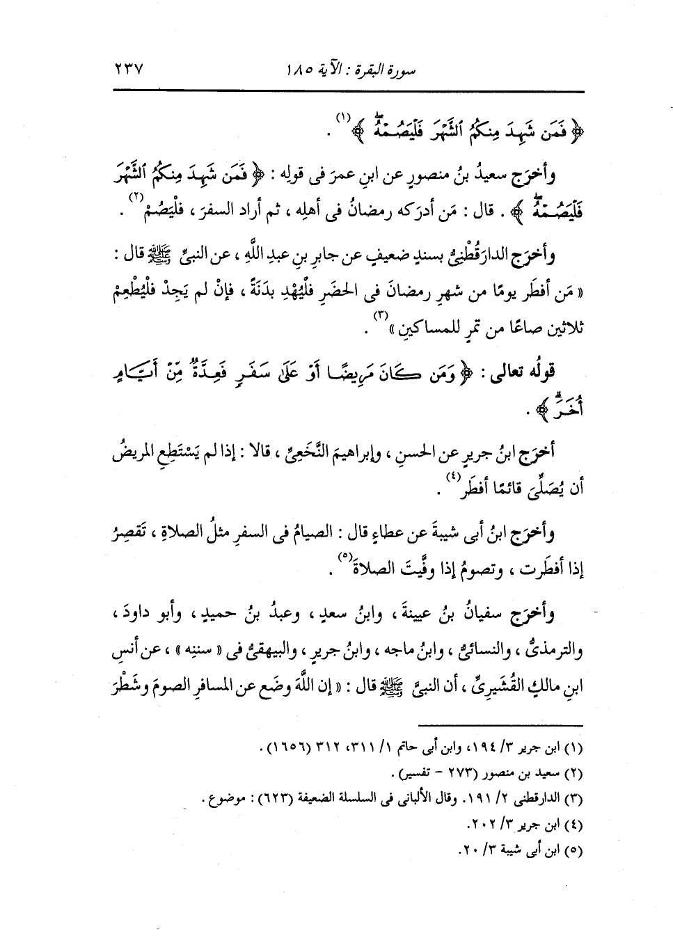 وأخرج عَبد بن حُمَيد عن سعيد بن جبير {فمن شهد منكم الشهر فليصمه} قال : إذا كان مقيما.