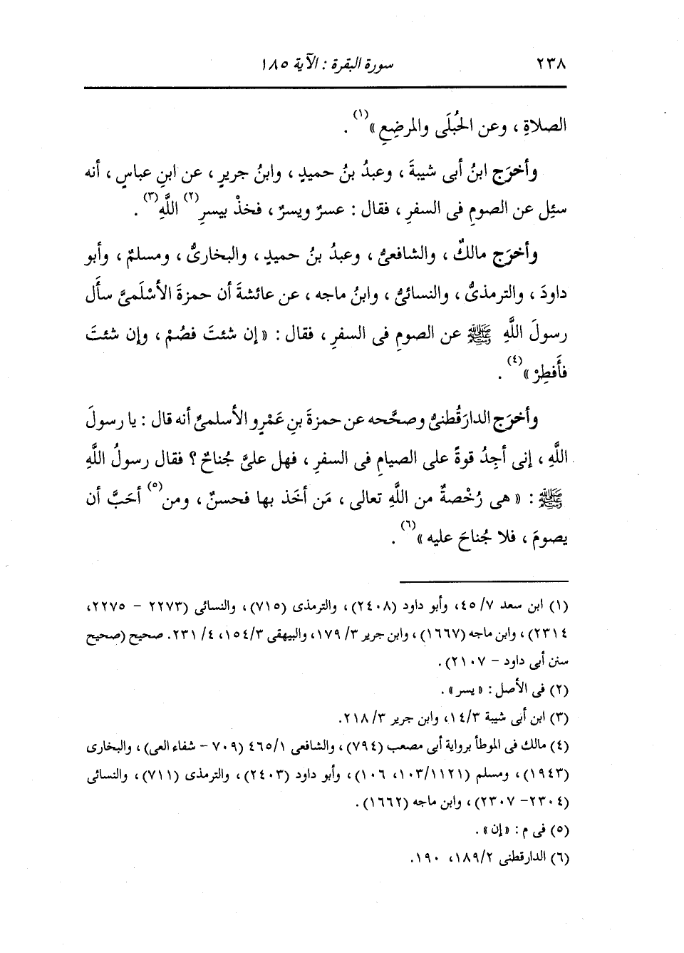 وأخرج سفيان بن عينية ، وَابن سعد ، وعَبد بن حُمَيد وأبو داود والترمذي والنسائي ، وَابن ماجه ، وَابن جَرِير والبيهقي في "سُنَنِه" عن أنس بن مالك القشيري ، أن النَّبِيّ صلى الله عليه وسلم قال إن الله وضع عن المسافر الصوم وشطر