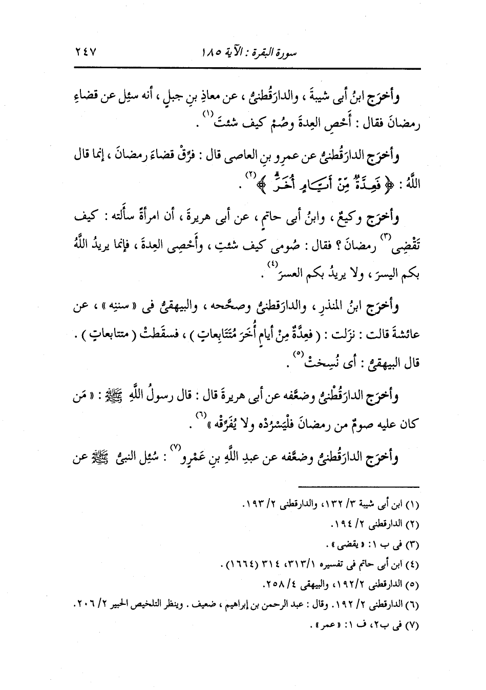وأخرج ابن أبي شيبة والدارقطني والبيهقي عن أبي عبيدة بن الجراح ، أنه سئل عن قضاء رمضان متفرقا فقال : إن الله لم يرخص لكم في فطره وهو يريد أن يشق عليكم في قضائه فاحصر العدة واصنع ما شئت