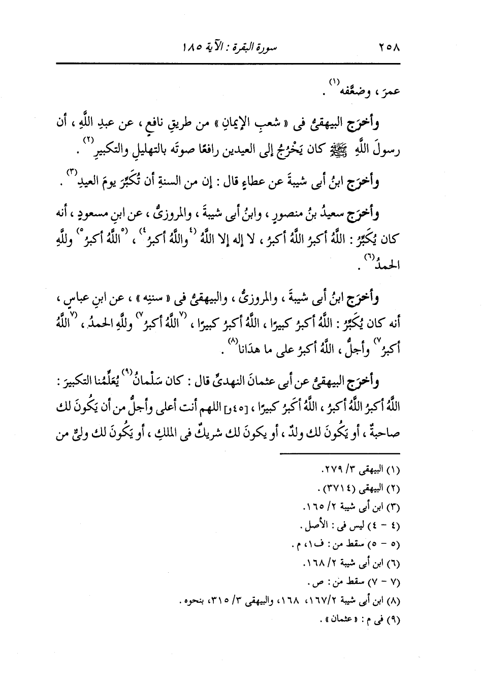 وأخرج البيهقي عن أبي عثمان النهدي قال : كان عثمان يعلمنا التكبير الله أكبر الله أكبر الله أكبر كبيرا اللهم أنت أعلى وأجل من أن يكون لك صاحبة أو يكون لك ولد أو يكون لك شريك في الملك أو يكون لك ولي من