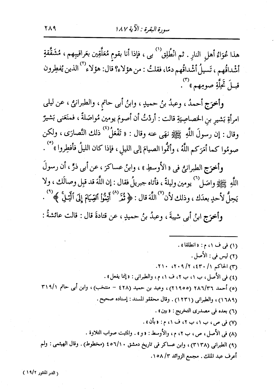 وأخرج أحمد ، وعَبد بن حُمَيد ، وَابن أبي حاتم والطبراني عن ليلى امرأة بشير بن الخصاصية قالت أردت أن أصوم يومين مواصلة فمنعني بشير وقال : إن رسول